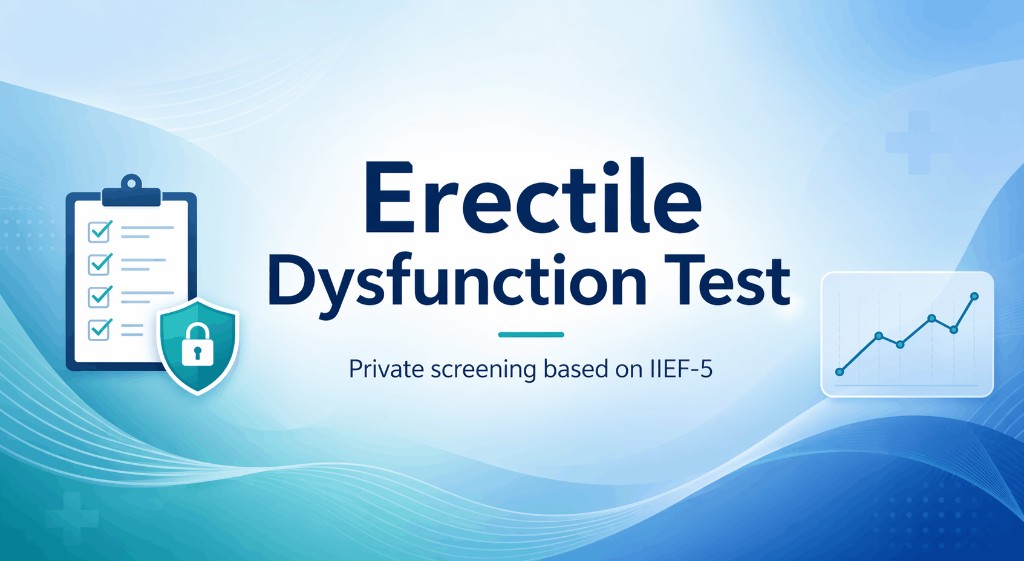 Este test evalúa la función eréctil mediante una puntuación validada de cinco preguntas y después añade preguntas de contexto sobre variación situacional, estrés, sueño y factores de estilo de vida.